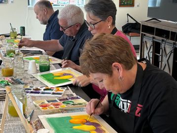 Beginners who want to learn the basics of watercolors; 6th grade - Adults. Supplies are provided for the first session. After completing one session of Beginner's class, students can advance to the Watercolor II class.
