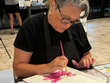 Students who want to learn the next level of watercolor techniques; 6th grade - Adults. Supplies are provided for the first session. After completing one session of Beginner's class, students can advance to the Watercolor II class.